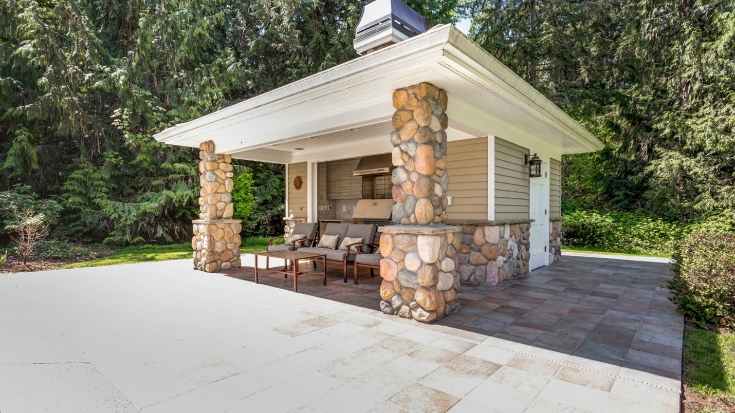 Both fire pits and outdoor fireplaces can bring the heat, but outdoor fireplaces have the advantage, since their taller backs block the wind and focus the heat. Add a roofed pergola, and there’s nothing warmer. But if you choose an open fire pit, there are still cozy options. Building the fire pit down out of the wind and circling it with successive layers of bench seats, hedgerows, and spruce trees does a lot to beat the wind chill.